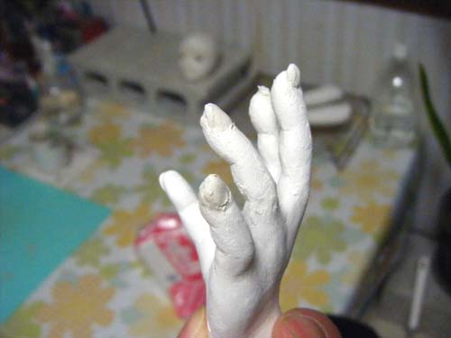 「手を作ってから、爪のところを削り取って、爪のある指先を作る」とあったのでやってみました。